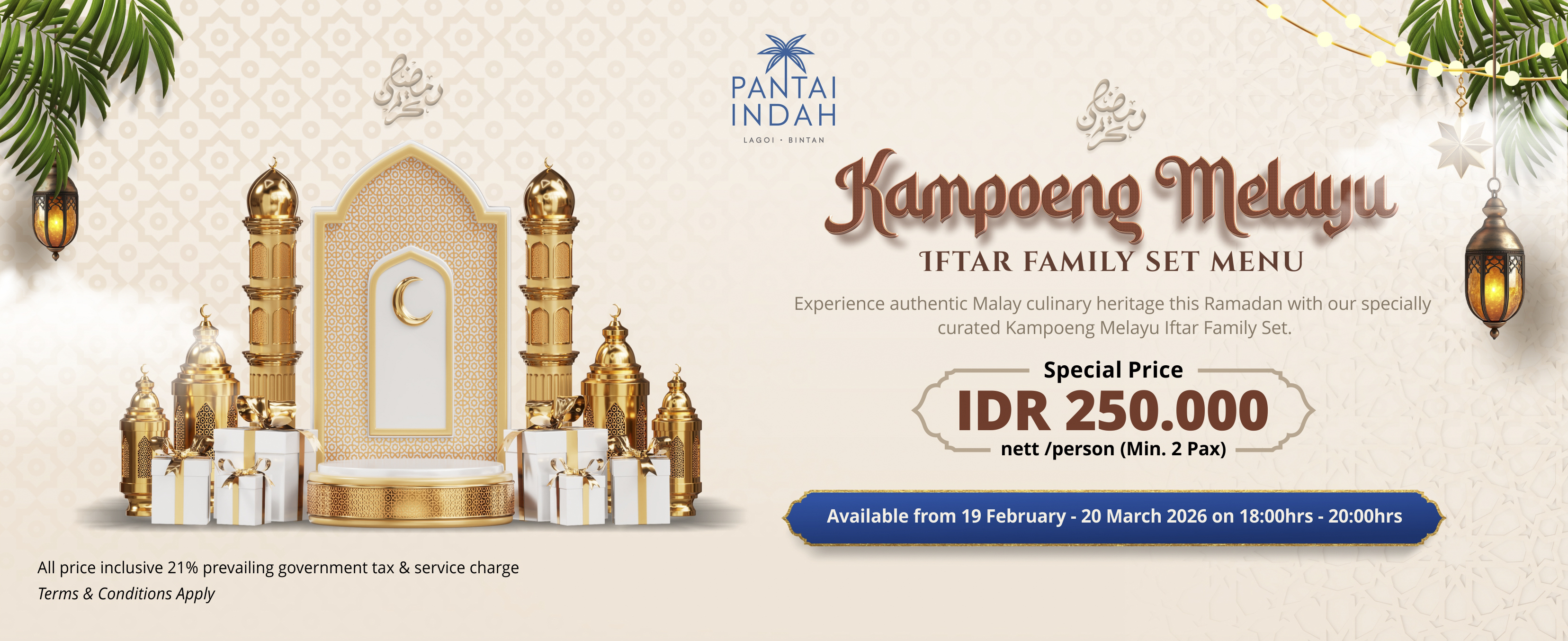 Break your fast with the rich and authentic flavors of Malay cuisine at Pantai Indah Lagoi – Bintan. Our specially curated Iftar Family Set is perfect for sharing warm moments with your loved ones this Ramadan.
